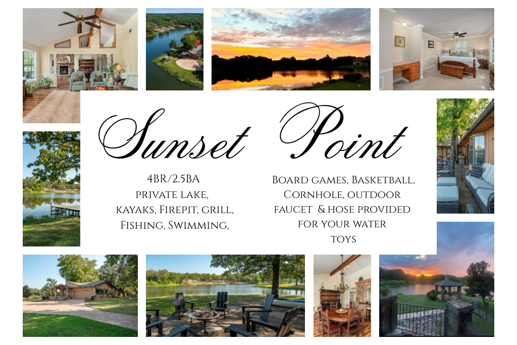 Sunset Point provides the comfort of home — ideal for family vacations, church retreats, or group getaways. With space for everyone, private lake access, and all the essentials for a stress-free stay, this property invites guests to slow down, reconnect, and enjoy the beauty of Lake Texoma.